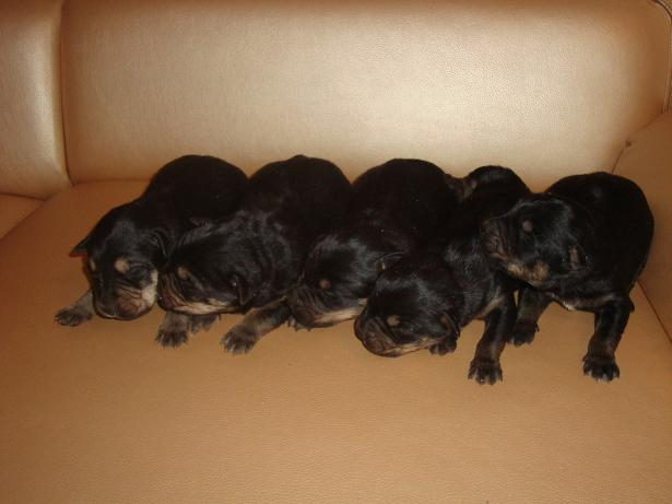 Лерик, а подробнее можно про этих зверьков? Кто такие, есть ли родословная, как папа с мамой себя вели, участвовали ли в выставках, обучены ли чему? Похоже, что ротвейлеры.
