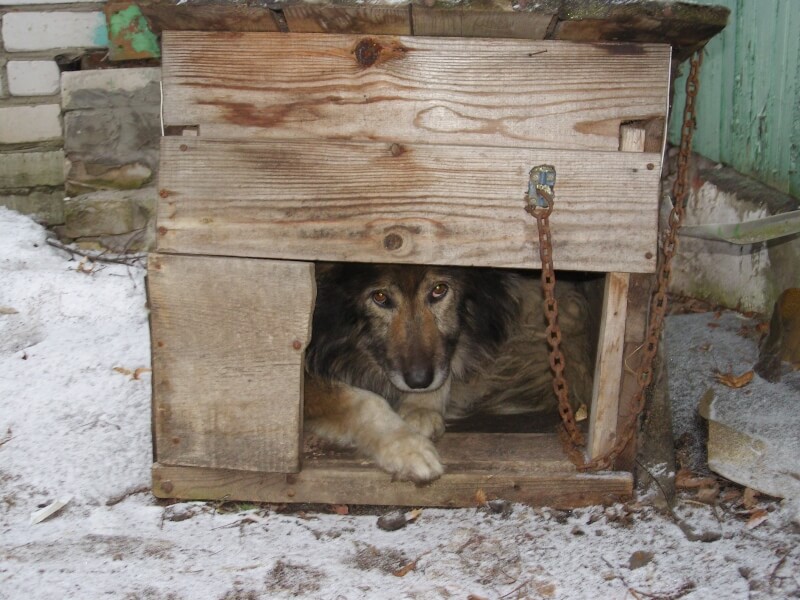 Залез в будку дворняги, доску оторвал самостоятельно