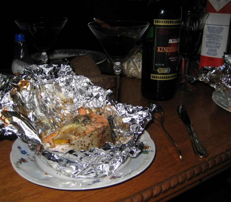 Когда не лень возиться с рыбой, случаются такие вечера. В тот раз вино в запасе было красное, но мы же не французы...