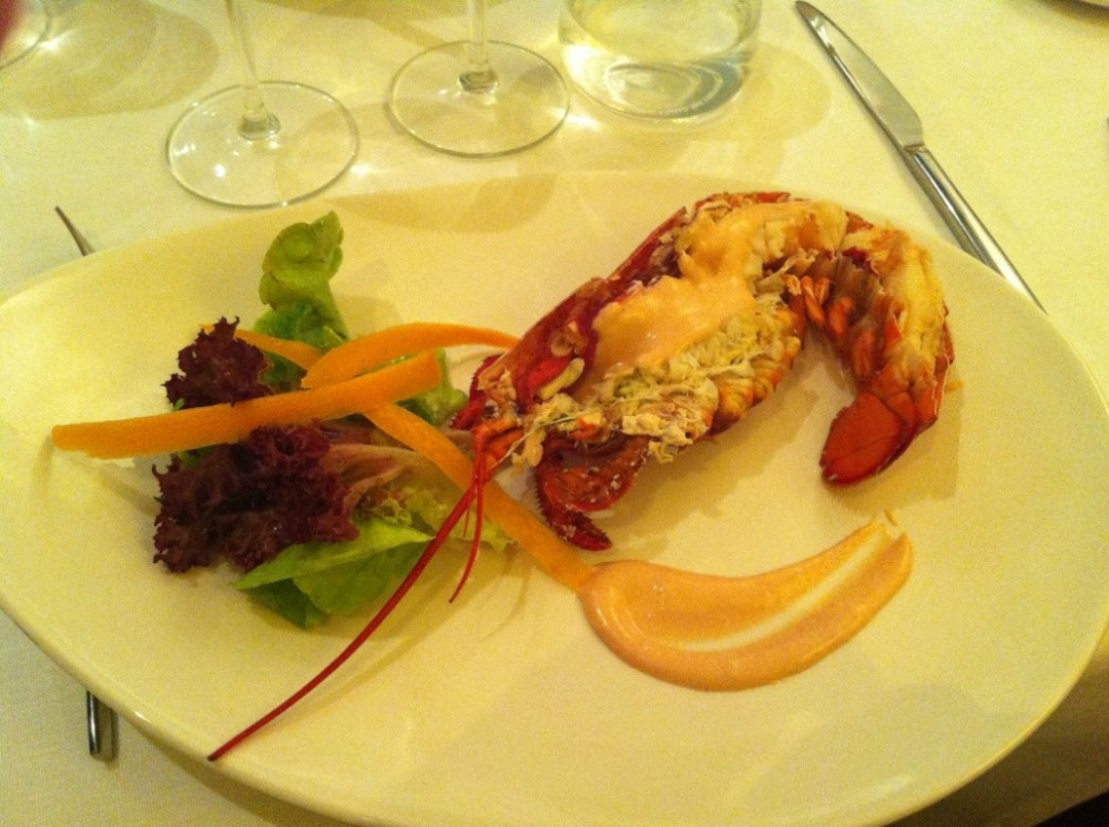 Вообще странное заведение, торт из ткани и одна тарелка с омаром. Диваны, столы пустые.
