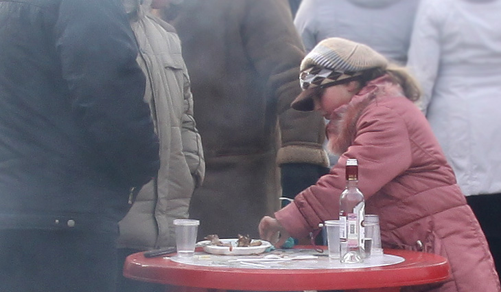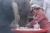 Мы уже не замечаем, насколько алкоголь вошел в сознание людей. Эти мужчины выпивают на Красной площади во время празднования масленницы. Рядом - дети. Такая "традиция" и плодит алкоголиков. Это - беда.
