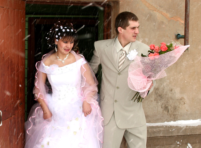 А мне выражения лиц понравились. Жених: "Томка, постой пока тут. Ща я тут одному упырю хлеборезку расшибу и поедем в ЗАГС" Невеста: "Славик, фу, смотри. Там Бомж лежит, он обгадился"