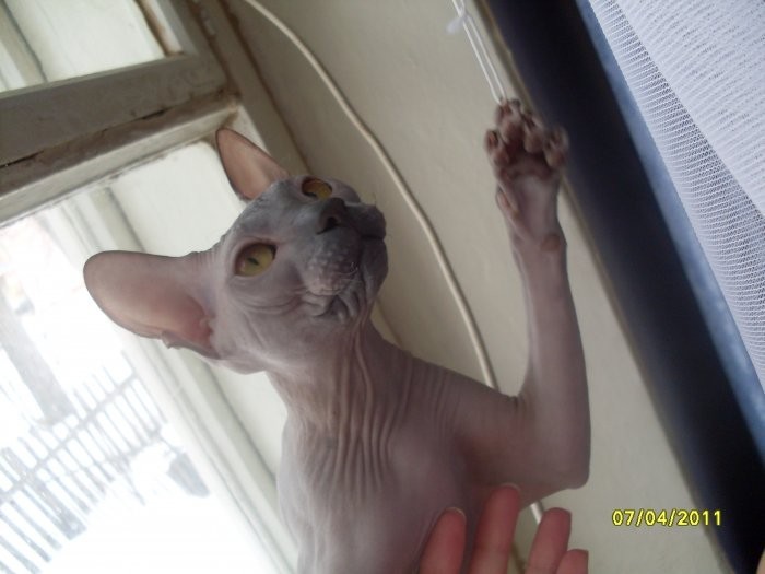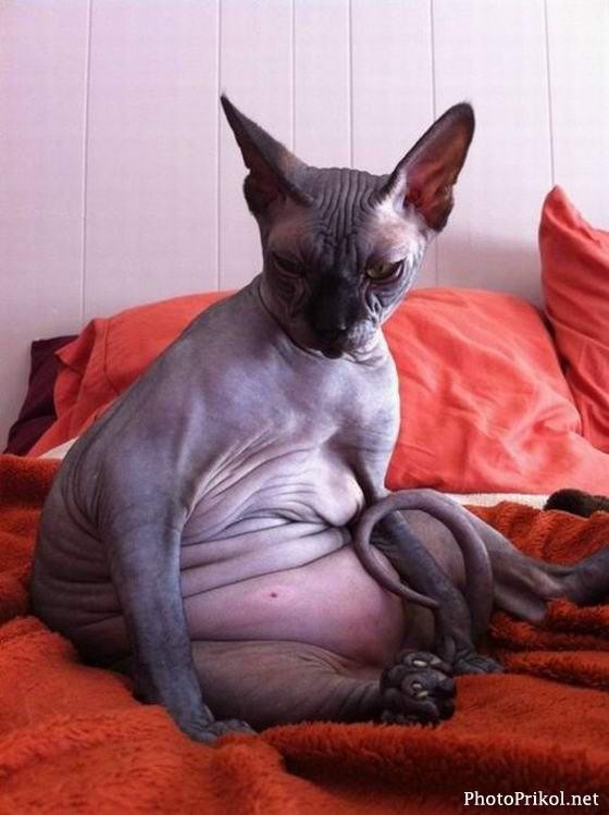 Musia,да ну нет конечно,не обижаемся) К нам как то медсестра приходила,а кошка потихоньку к ней подкралась сбоку,у медсестры чуть инфаркт не случился,грю да не пугайтесь вы так,они чернобыльцы просто))) а вобще,даж самые противники сфинксов,со временем общения,проникаются к кошакам)