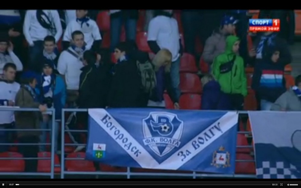 в среду 11 апреля 2012 г. на полуфинальном матче кубка России по футболу между ФК Динамо М и ФК Волга НН,присутствовали представители Богородского филиала клуба болельщиков ФК Волга НН, разместившие на трибуне Большой спортивной арены "Лужники" свой банер