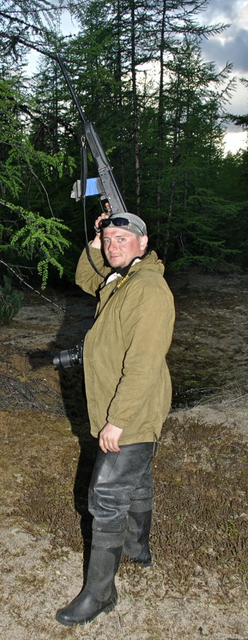 с Сайгой и фотоаппаратом на перевес.Фотик как оптический прицел использовать)))