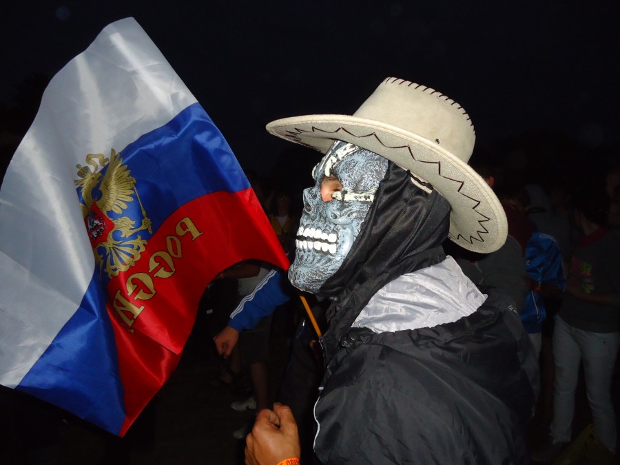 А по-мне, вся символика в том, что одежда, и вся прочая приблуда этого "патриота" сделаны в Китае, даже сама пародия на президентский штандарт.
