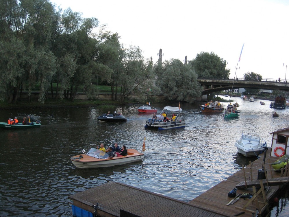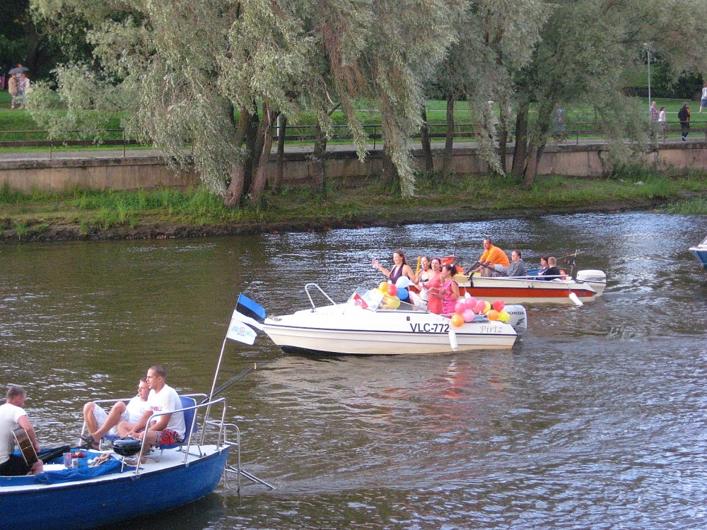 Обязательно побывай! Всё гораздо ближе, пару часов от Питера на машине: Эстония, Тарту. На снимках местная речка во время Дней Города. Каких только посудин по ней не проходило! Вот тут цельновыдолбленные каное, на воду, правда, в этот день не попали.