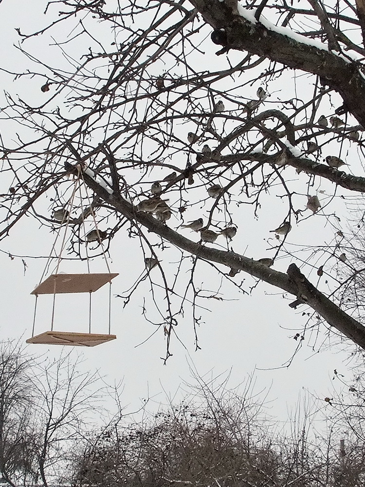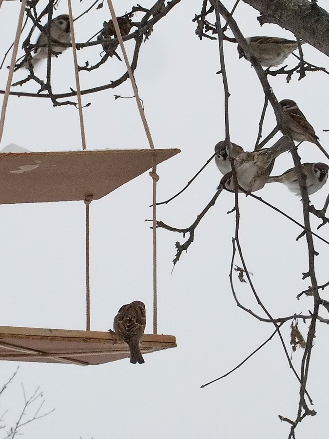 Прикольно. А мы кормушки не вешаем. У нас птахи как у Христа за пазухой живут. После кормежки гусей столько жратвы остается - едят от пуза.
