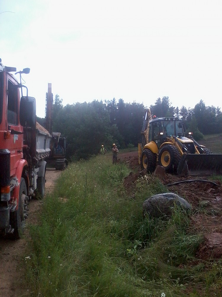 На прошлой-позапрошлой неделе одна из бригад работала далековато (по и100нским меркам), ну, по такому случаю на две недели была снята банька, чтоб было, где переночевать народу. Как раз там, - как и положено, чтоб на пригорке и у водоёма, который, по доброй советской традиции, просто надо было засрать навозом, - был когда-то свинючник. Место до ума ещё не доведёно у хозяев, но бригада в свинючнике явно не томилась. Это работали.