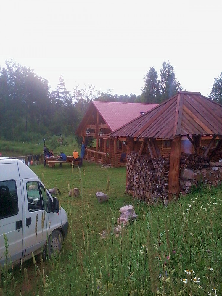 На прошлой-позапрошлой неделе одна из бригад работала далековато (по и100нским меркам), ну, по такому случаю на две недели была снята банька, чтоб было, где переночевать народу. Как раз там, - как и положено, чтоб на пригорке и у водоёма, который, по доброй советской традиции, просто надо было засрать навозом, - был когда-то свинючник. Место до ума ещё не доведёно у хозяев, но бригада в свинючнике явно не томилась.
