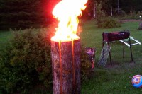 В процессе подсушивания для лучшего газообразования сердцевина была полита трансформаторным маслом вместо уротропиновой пропитки. Очень хороший и совсем бездымный факел.