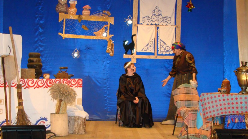 "Ну и какого *уя ты тут, старый, расселся, печь не топлена, пол не выметен, самовар остыл давно!!"