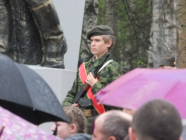 Пацан у памятника с фанерным калашом пост пост бдит. Надо было и пацана фанернерного поставить, что уж там...