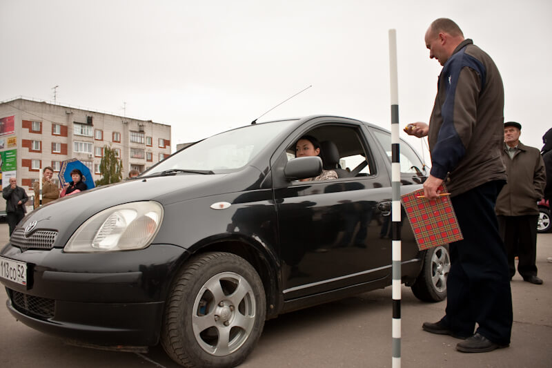 А ты то зачем присел? Не тебе же бежать. В результате - лицо девушки закрыто зеркалом.