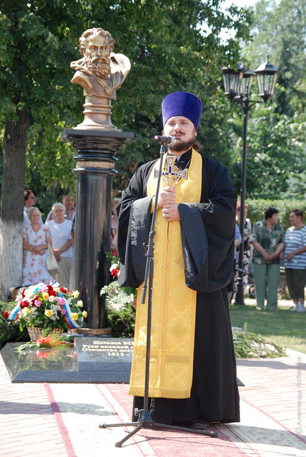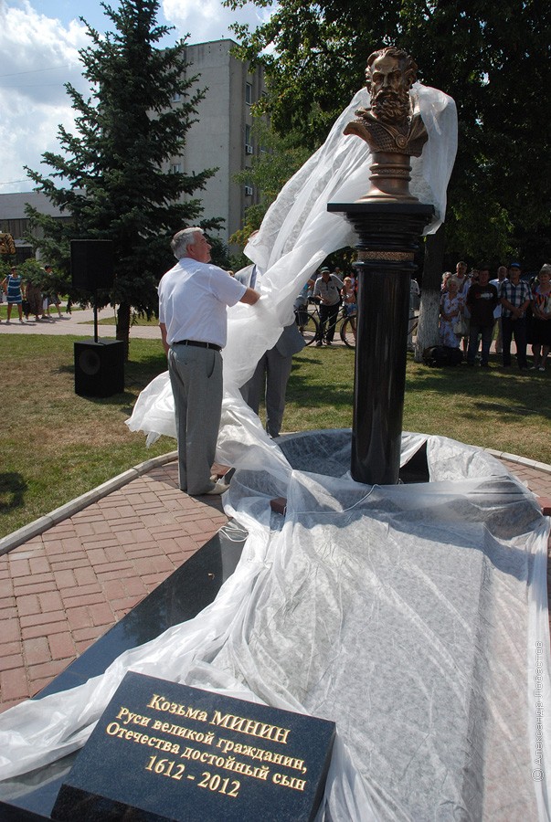 Вообще Козьма Минин - великая историческая фигура. Понятно, что если уж не памятник, то бюст точно был нужен. А вот присутствие представителей РПЦ, с ее-то сегодняшней репутацией, важное и в масштабах маленького города историческое дело превращает в фарс и пошлятину. Это полбеды, еще и бросает тень на Козьму Минина.