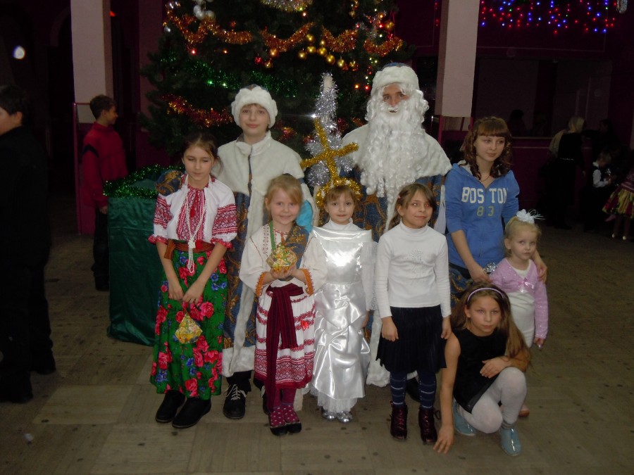 Рождественские Деды с детьми после спектакля 7 января 2013г. в Городском ДК (СТО "СЛАВЯНЕ")