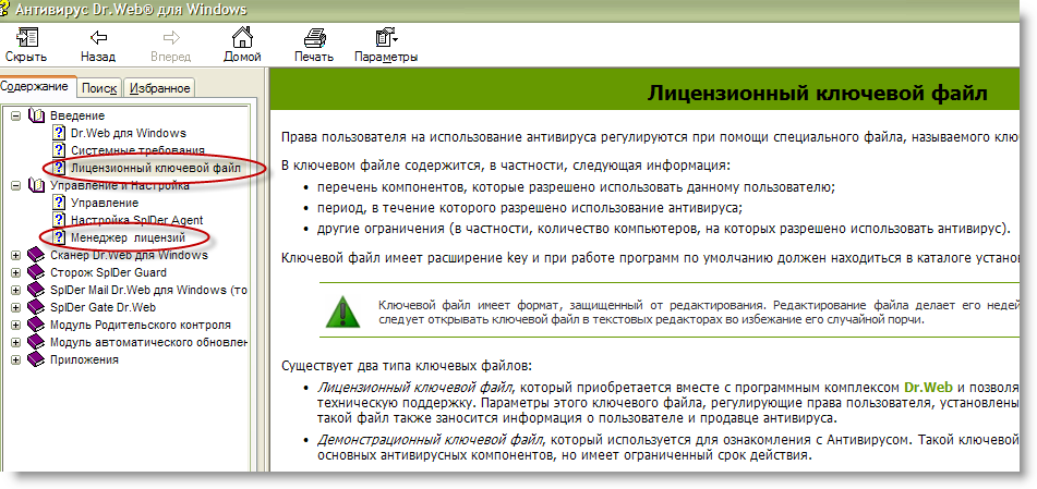 Скачать официальный журнальный ключ к последним версиям (для всех версий Dr.Web, включая Антивирус, Security Space, Бастион, Mobile) Как установить ключ Dr.Web Поместите полученный zip-архив в любую папку, кроме той, в которой установлен антивирус. Затем нажмите правой кнопкой мыши на значок антивируса (паучок на зеленом щите), который находится в правом нижнем углу экрана в районе системных часов. Выберите Инструменты –> Менеджер лицензий. Если у вас установлена версия Dr.Web 5.0 — нажмите справа на значок Обзор (это желтая лупа), найдите ключ. Нажмите Открыть. После импорта ключа перезагрузите компьютер. Если у вас установлена версия Dr.Web 6.0 или 7.0 — нажмите Получить новую лицензию –> Указав путь к файлу на диске..., найдите ключ. Нажмите Открыть. После импорта ключа перезагрузите компьютер. ----------