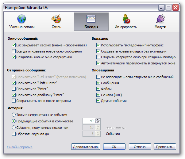 | Последний релиз: Miranda 0.8.27 Бета-версия 0.9.0 beta #1 (Miranda 0.9.0 Beta #1) (от 18 июля 2010) Плагины, дополнение, руссификатор и т.д. Готовые сборки: ICQ-протоколы: Полезные сайты, ресурсы: |