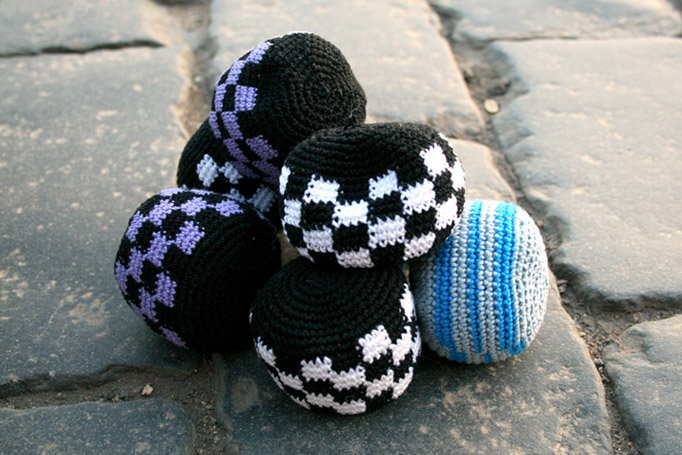 | Берешь мягкую кожу/кожзам (не больше 0,5 мм толщиной), вырезаешь 12 равных пятиугольников (12-панельный) или 12 пятиугольников и 20 шестиугольников (32-х панельный, шъется по принципу футбольного мяча), после чего все это безобразие аккуратно сшивается. Маленький совет - все панели до самой последней (должно остаться незашитым 3 шва) нужно сшивать изнутри, после чего аккуратно вывернуть его и еще аккуратней зашить до конца (засыпать набивку лучше всего когда останется незашитым только один шов). Тогда футбэг (это уже никак соксом не назовешь - язык не поворачивается) получится ровным, круглым, без видимых швов. Если он немного неровный - не беда, буквально через пару-тройку хороших игр он разомнется и станет просто идеальным. Преимущества: кожа долго не протрется, очень удобен. Недостатки: очень долго и трудно делать (у меня уходит 3-4 часа) и иногда рвутся нитки на швах, но их можно снова зашить (нитки не кожа, это не проблема).